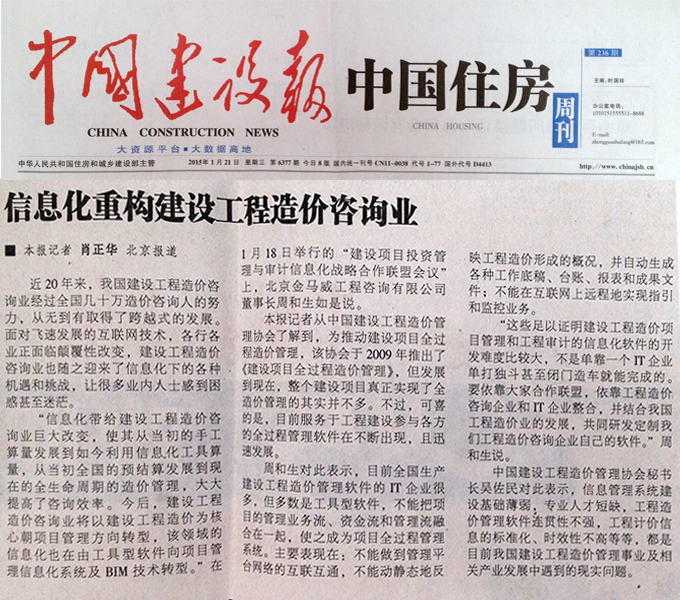 《中國建設(shè)報(bào)》對我公司召開的“建設(shè)項(xiàng)目投資管理與審計(jì)信息化戰(zhàn)略合作聯(lián)盟會(huì)議”進(jìn)行報(bào)道
