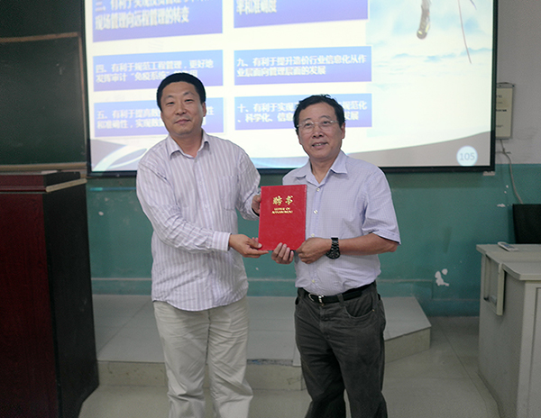 2014年9月13日,應(yīng)長春工程學(xué)院邀請,我公司董事長周和生先生為該校管理學(xué)院學(xué)生講授“建設(shè)項目投資管理及審計信息化”課程,且受聘為長春工程學(xué)院客座教授。我司向長春工程學(xué)院捐贈“建設(shè)項目全過程投資管理及審計系統(tǒng)”軟件(價值145萬元),大力支持該校教學(xué)工作。